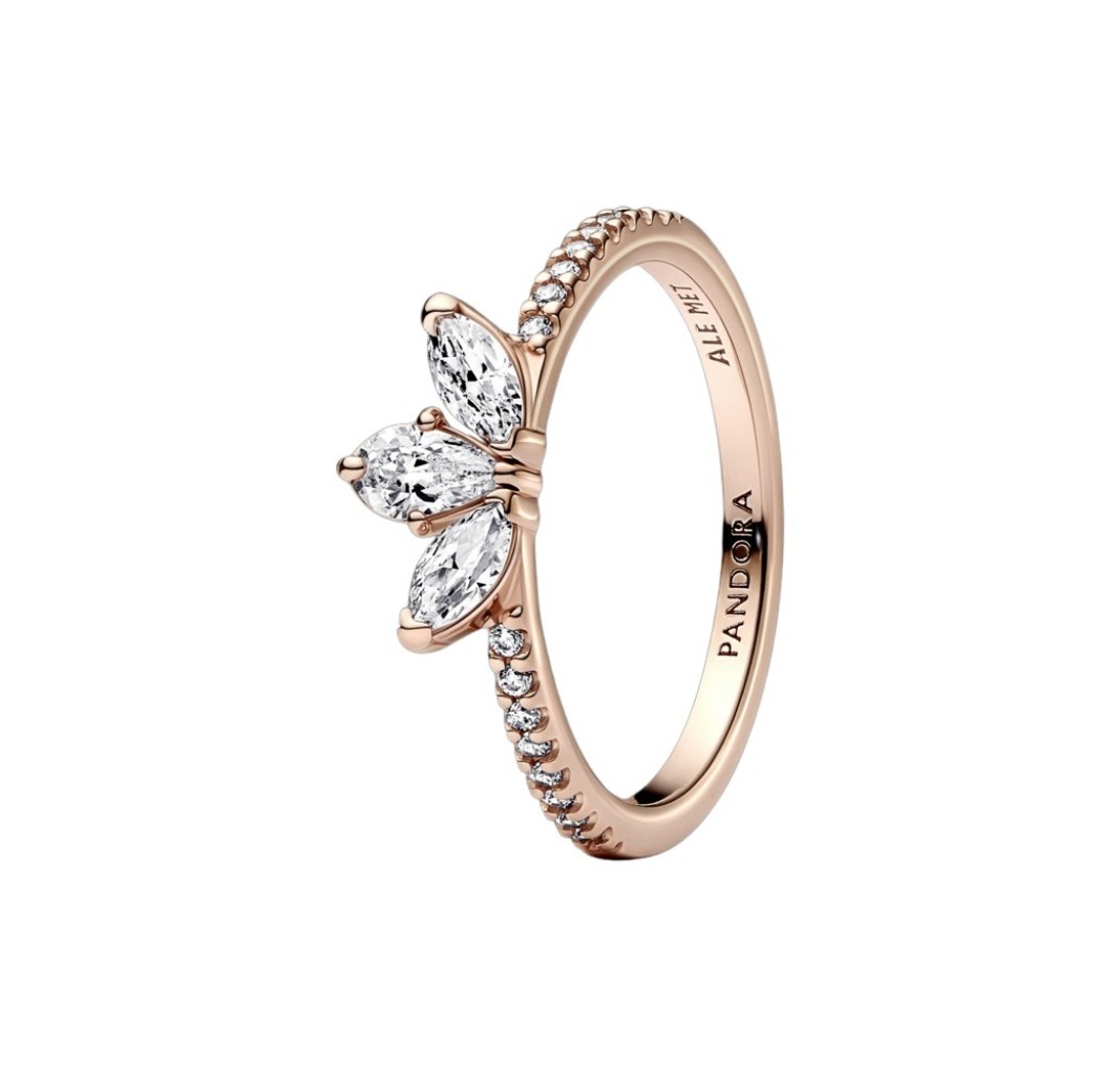 182392C01-52 Herbarium cluster 14k rose gold-plated ring with clear cubic zirconia