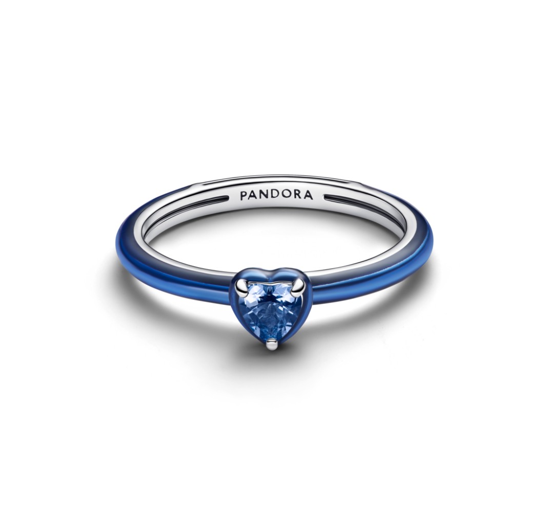 193088C03-56 Heart sterling silver ring with blue crystal and blue enamel