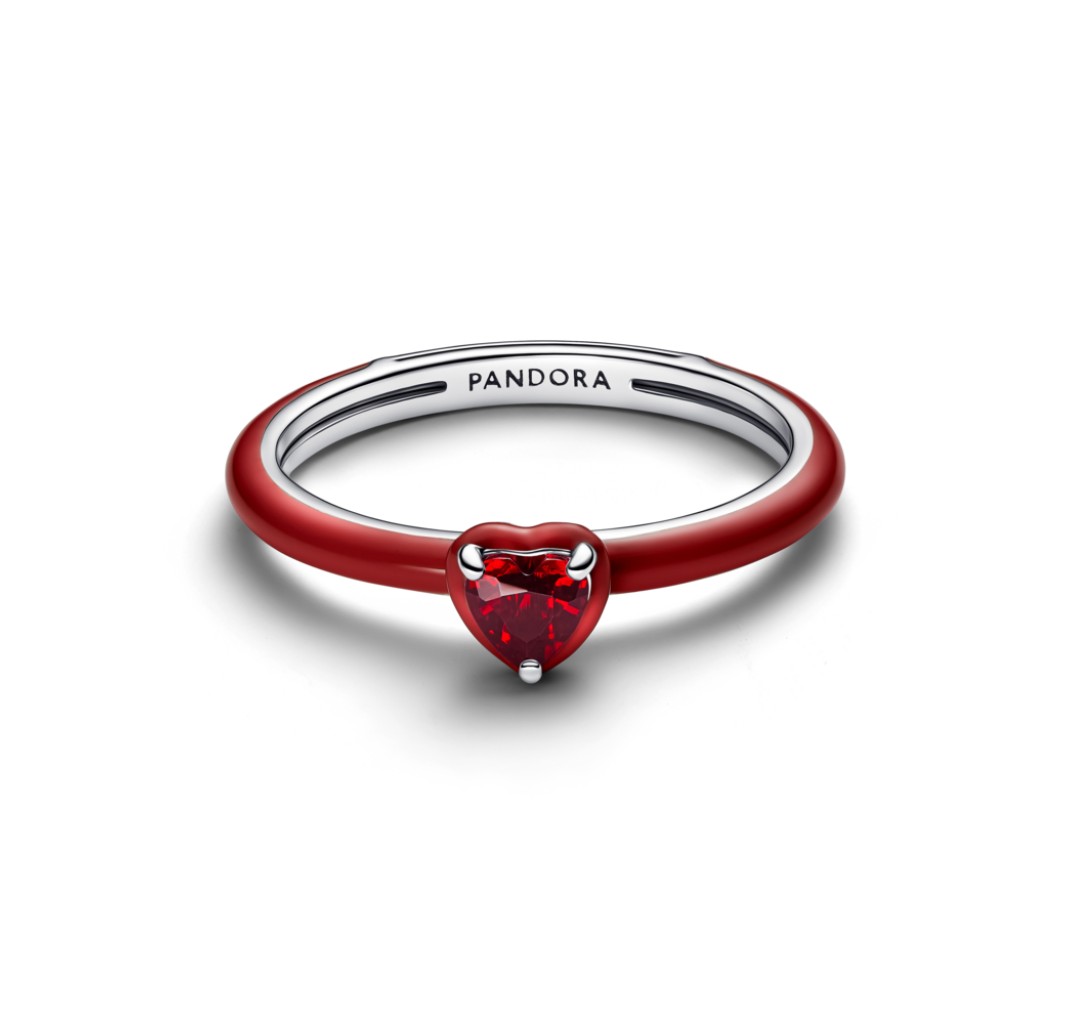 193088C05-54 Heart sterling silver ring with salsa red crystal and red enamel