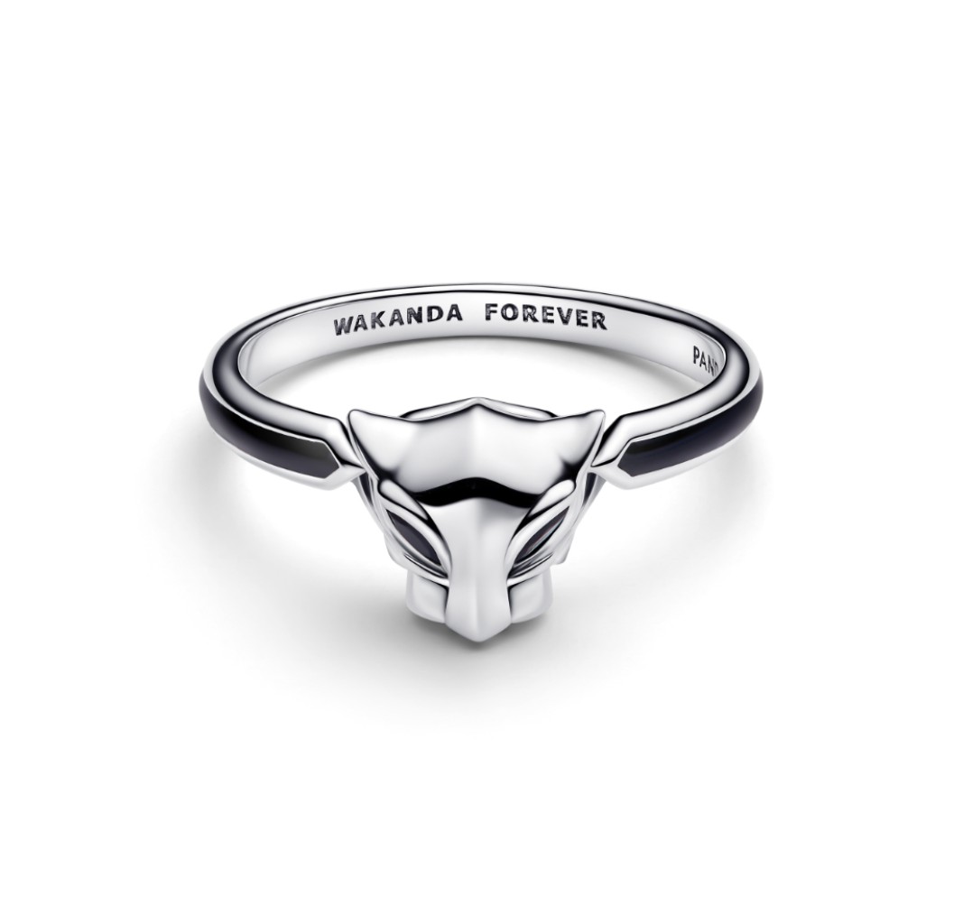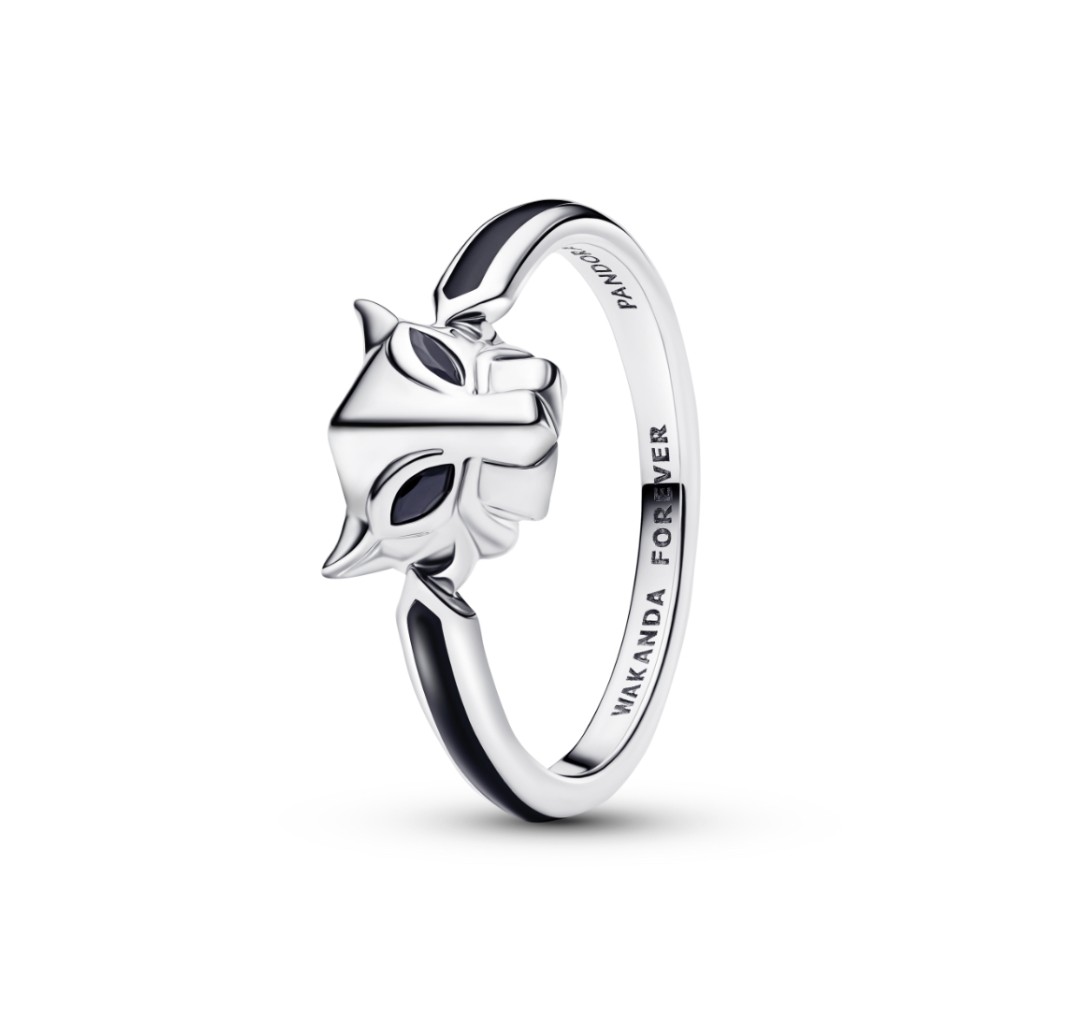 194223C01-54 Marvel Black Panther sterling silver ring with black crystal and black enamel