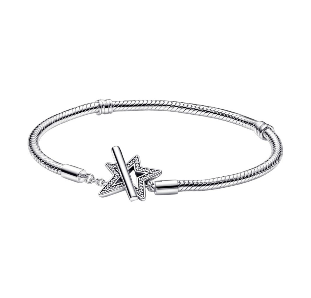 592357C01-19 Snake chain sterling silver star toggle bracelet with clear cubic zirconia