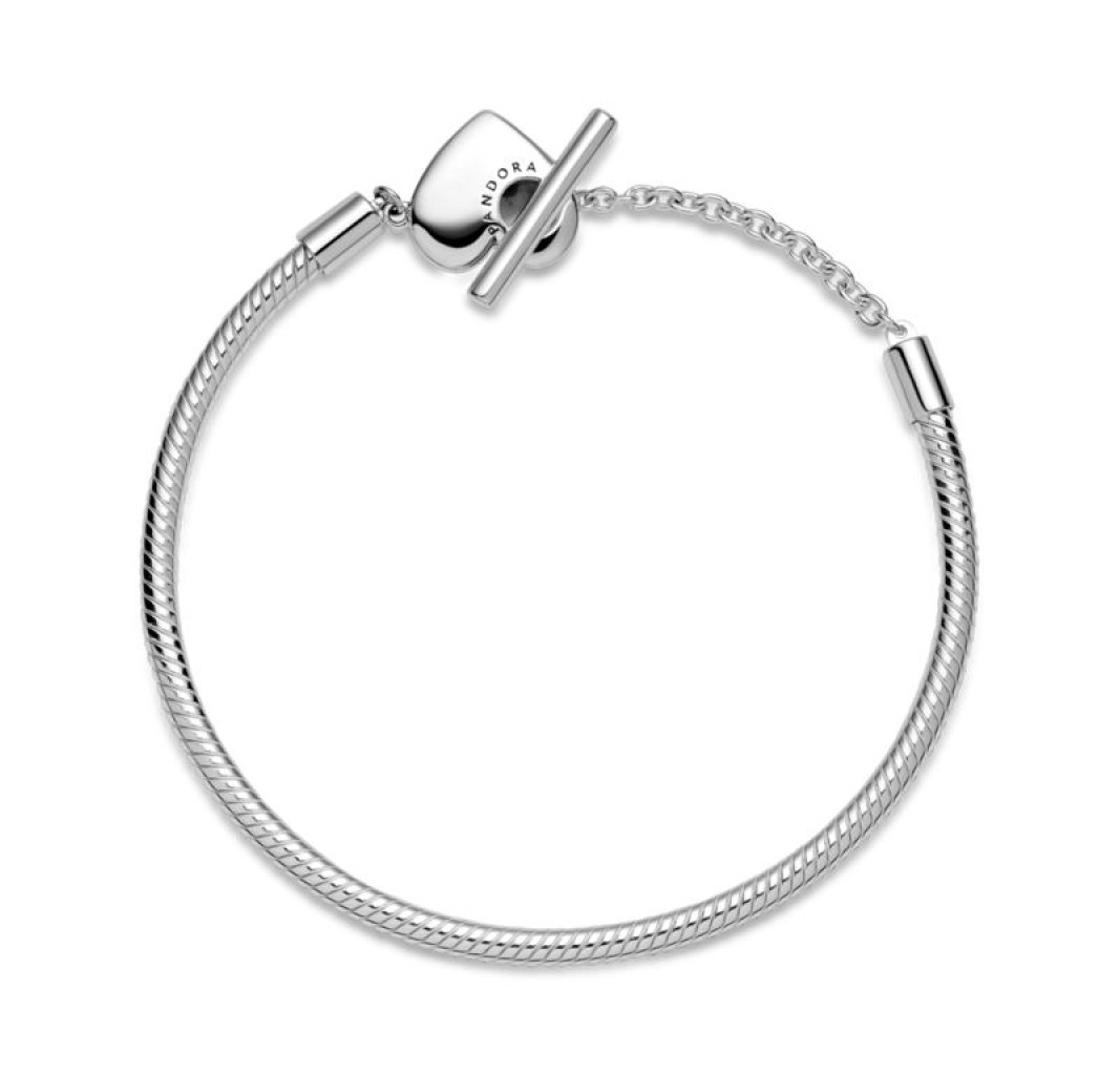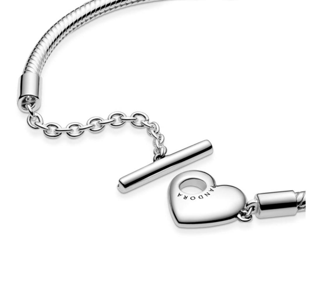 599285C00-19 Snake chain sterling silver T-bar heart bracelet