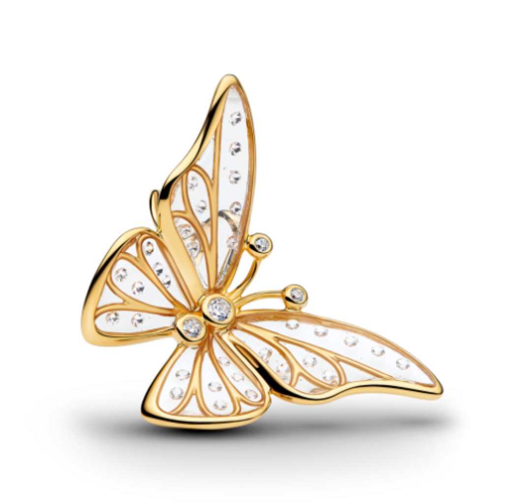 PANDORA 764487C01 Charm de mariposa bañado en oro de 14k con circonita cúbica transparente y resina UV transparente