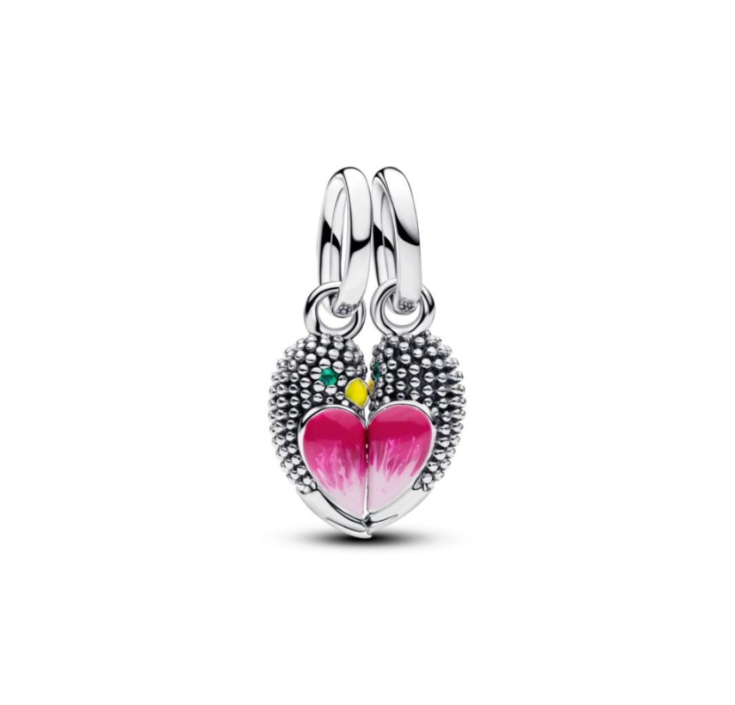 PANDORA 794484C01 Colgante magnético divisible de pájaros del amor en plata de ley con cristal verde real, esmalte amarillo y rosa sombreado.