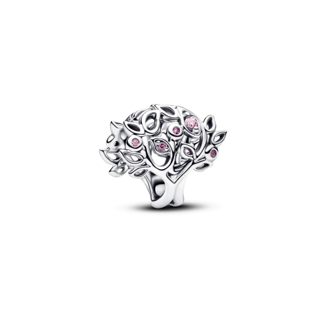 PANDORA 794486C01 Charm de plata de ley con forma de árbol de la vida con elegante circonita rosa y cristal rosa fucsia.