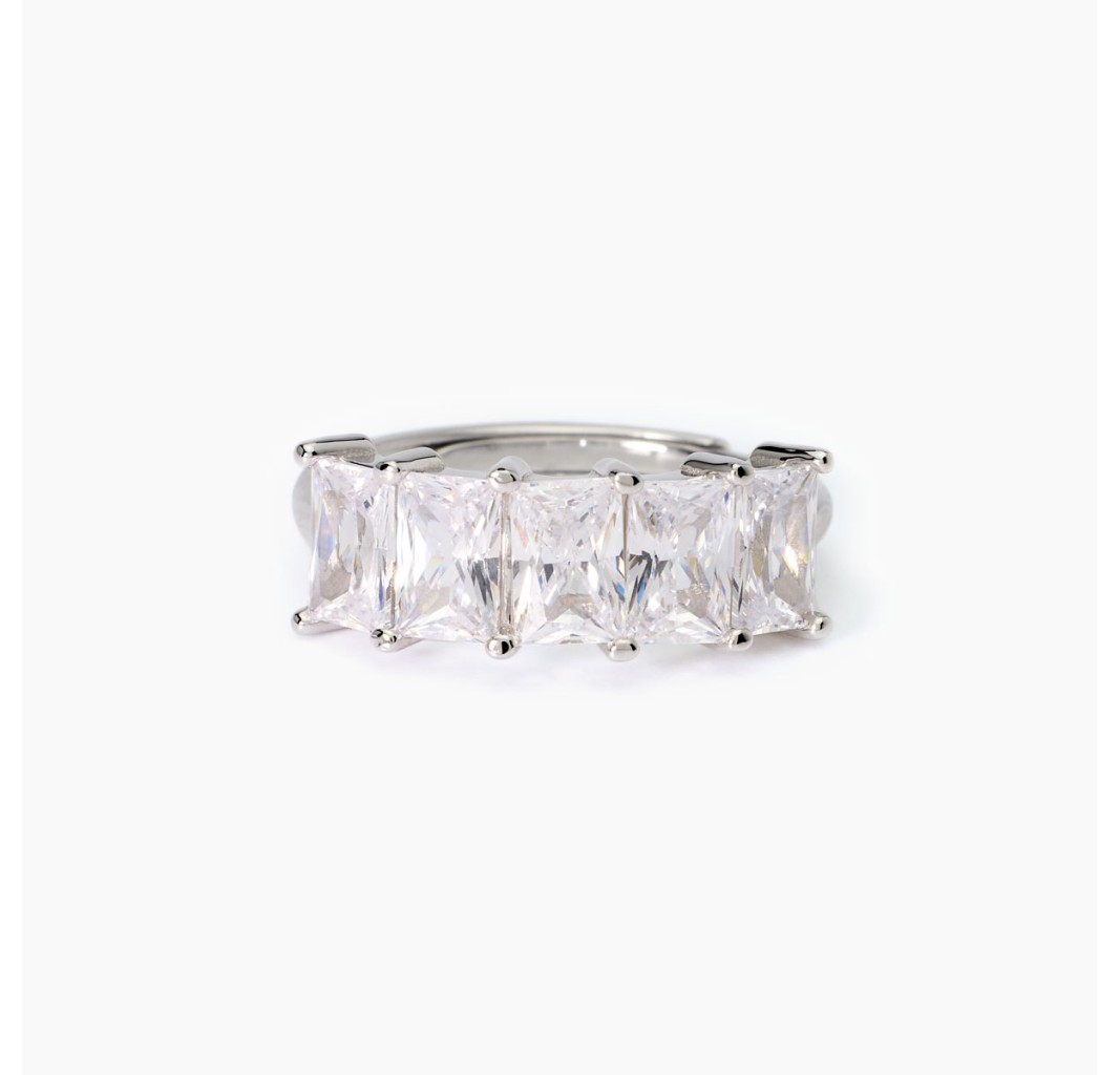 Anillo de plata 925 rodiada con circonitas talla baguette de 4x6 mm, talla regulable del 11 al 19