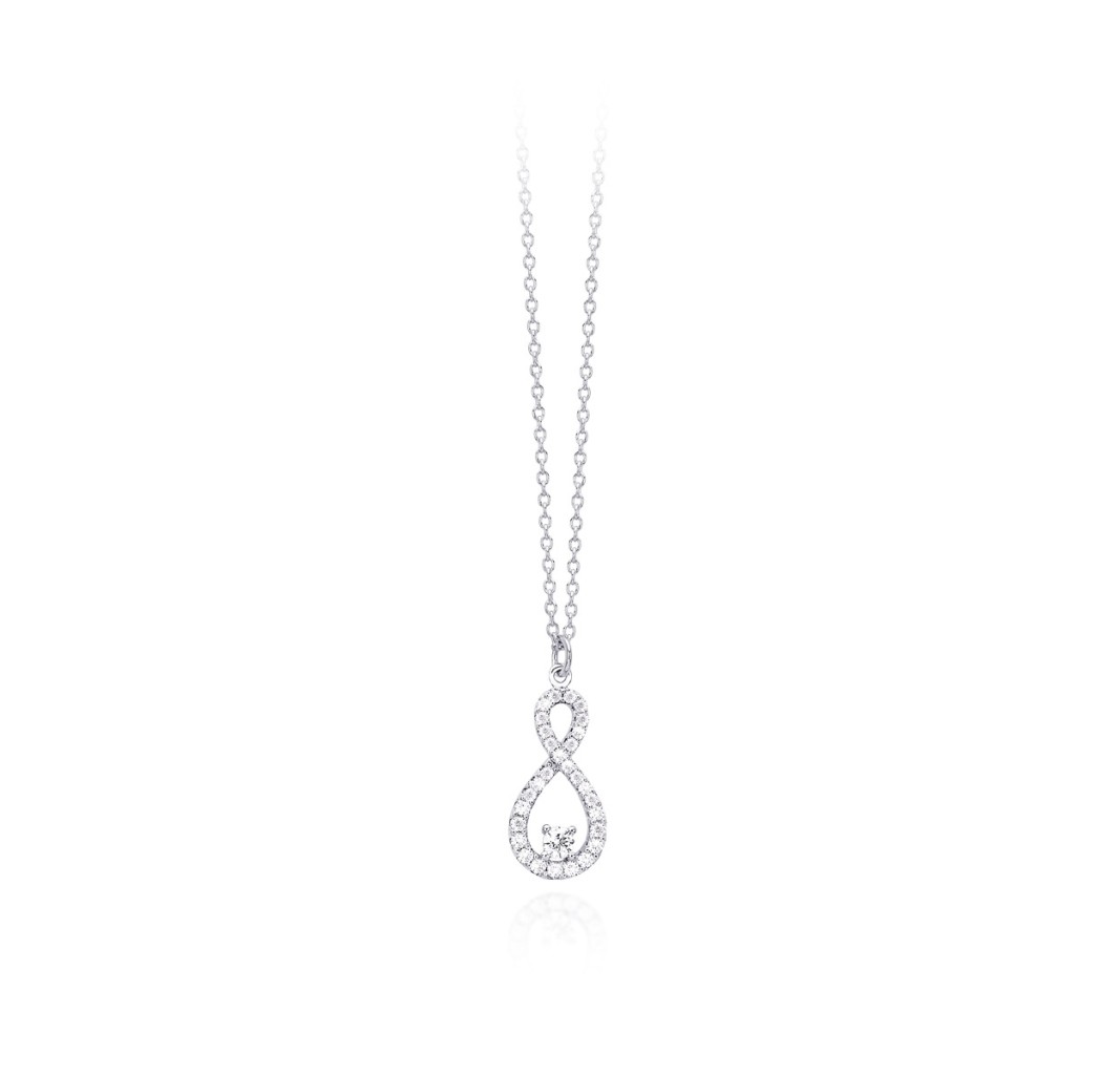 Gargantilla de plata 925, rodiada con colgante infinito y circonitas.