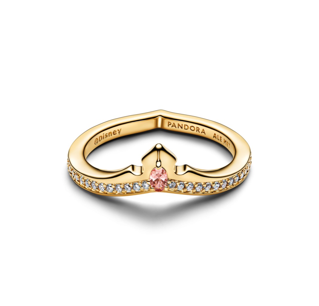 PANDORA 164334C01 Disney Aurora 14k gold-plated ring with misty rose cubic zirconia and clear cubic zirconia