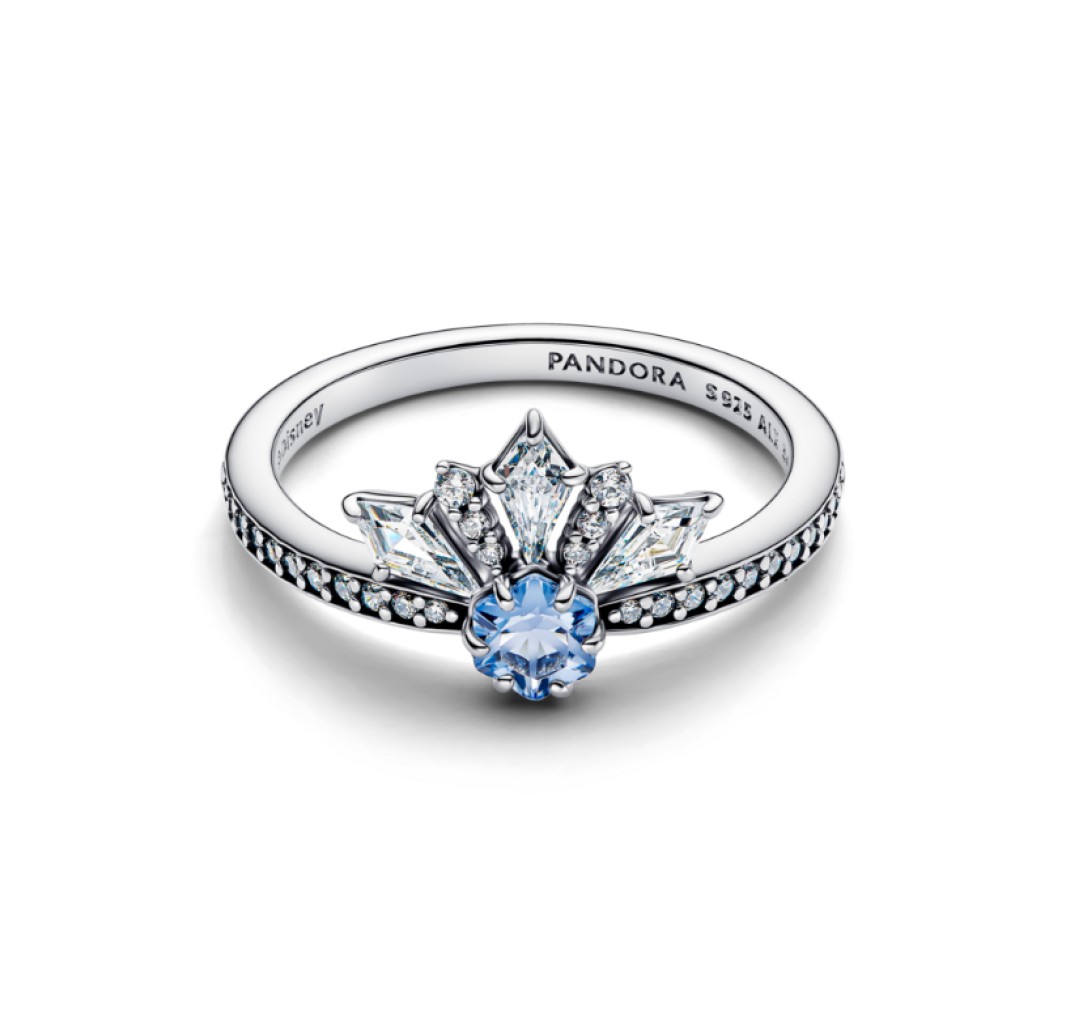 PANDORA 194134C01 Anillo de plata esterlina de Elsa de Disney Frozen con cristal azul agua y circonita cúbica transparente