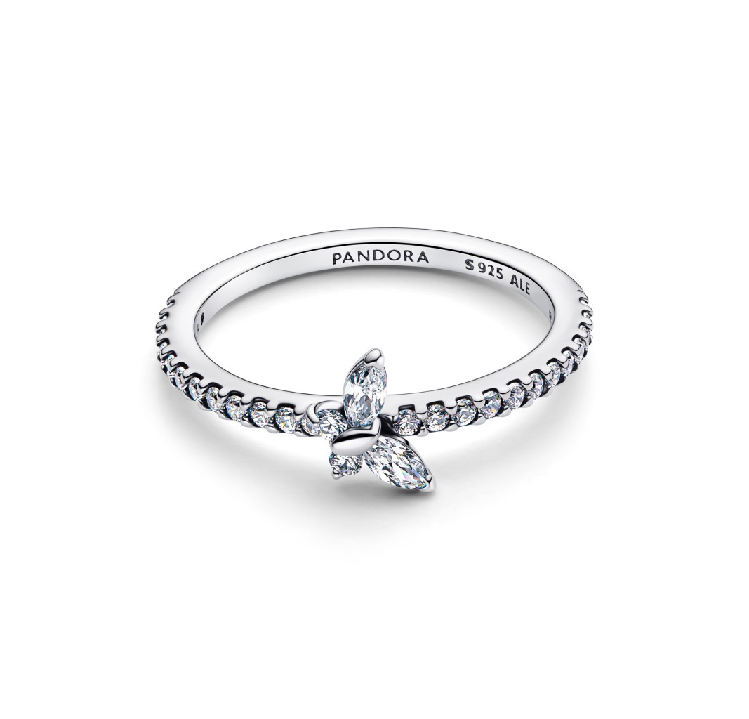 PANDORA 194269C03 Anillo de plata de ley con forma de mariposa y circonitas transparentes.