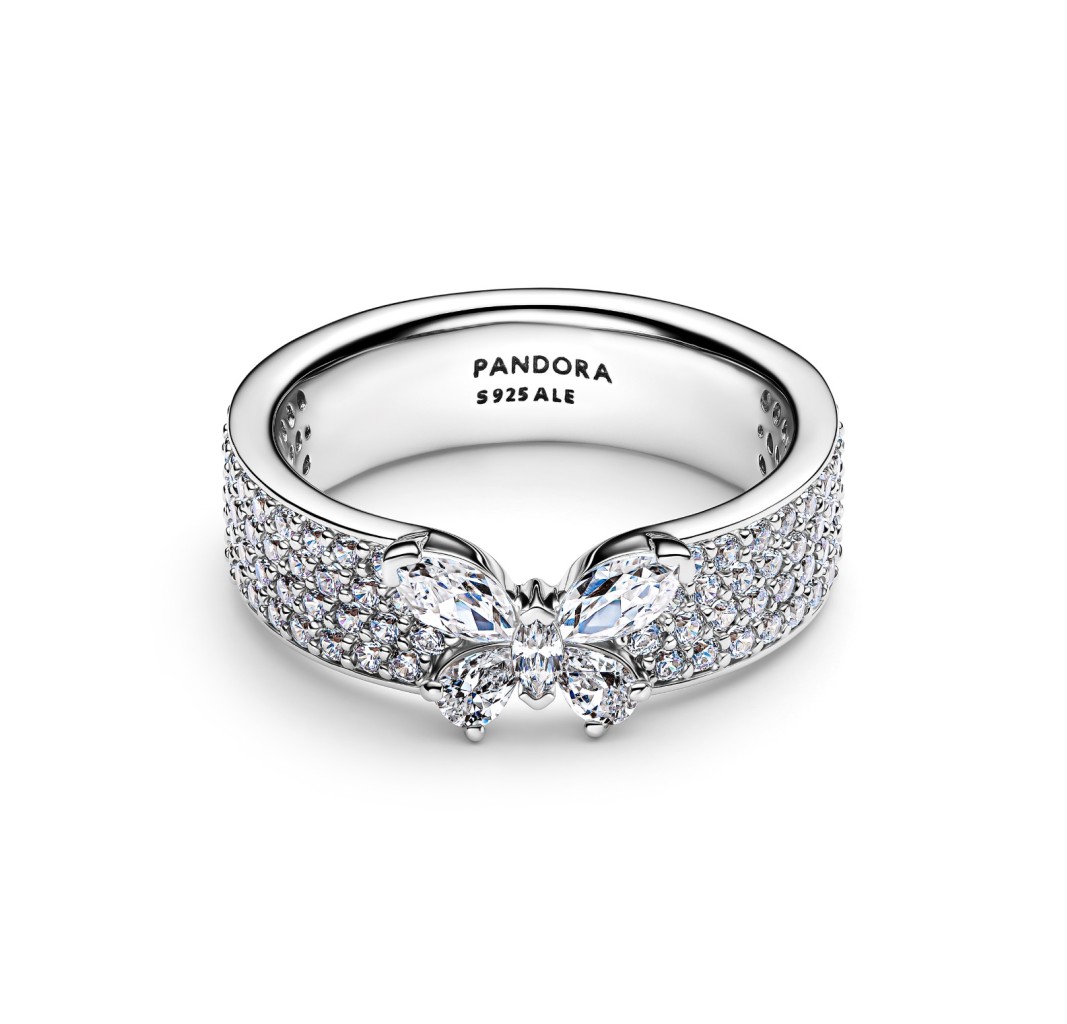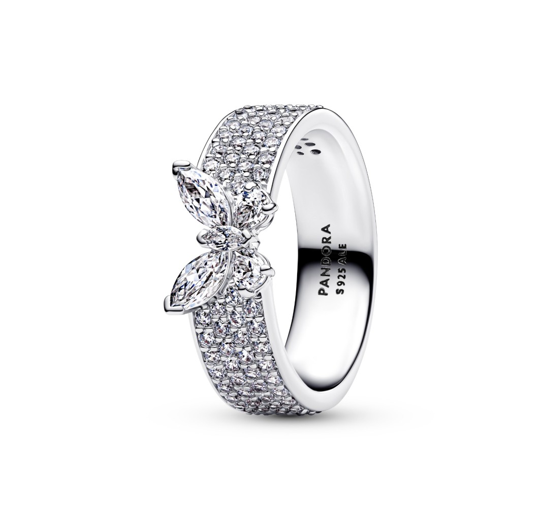 PANDORA 194270C01 Anillo de plata de ley con forma de mariposa y circonitas transparentes.