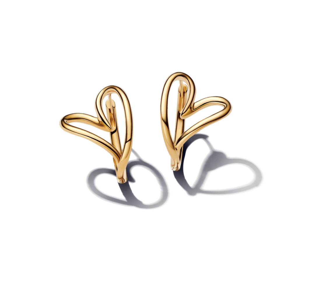 PANDORA 263807C00 Pendientes de aro con un recubrimiento en oro de 14k Corazón Forma Orgánica