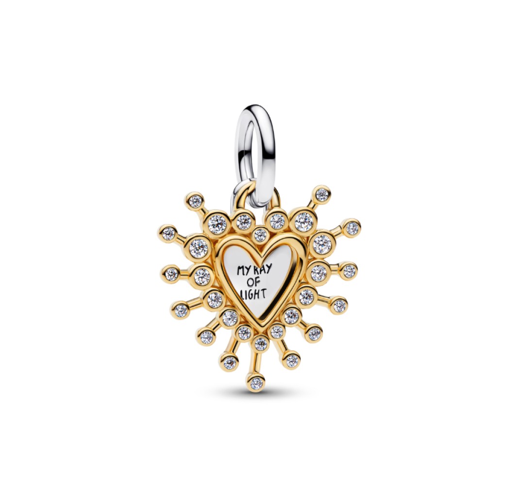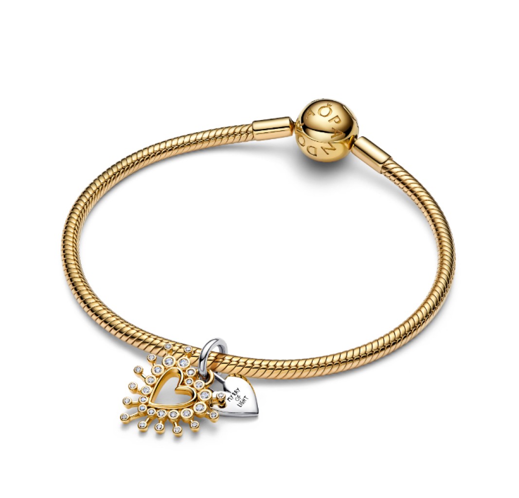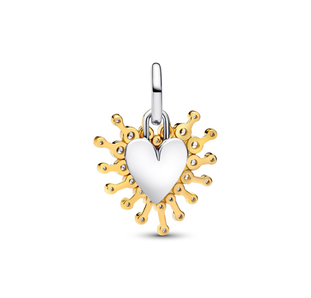 PANDORA 764141C01 Colgante doble de corazón en plata de ley y baño de oro de 14k con circonitas cúbicas transparentes
