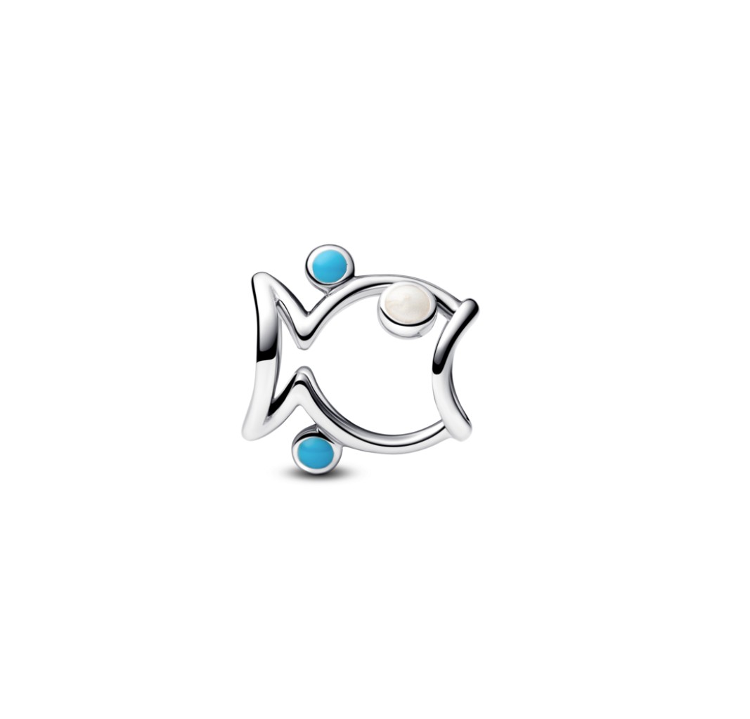 PANDORA 793819C01 Fish sterling silver charm with shimmering white and turquoise enamel