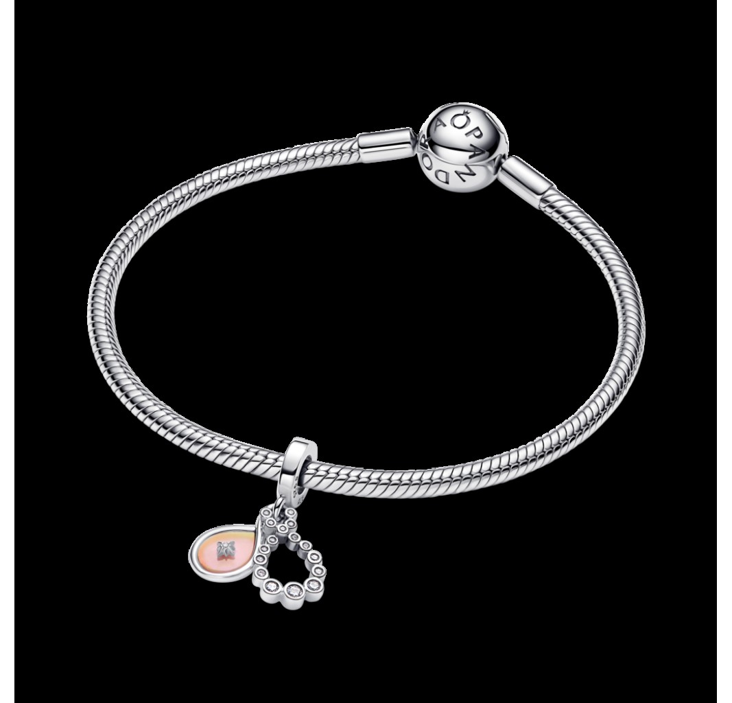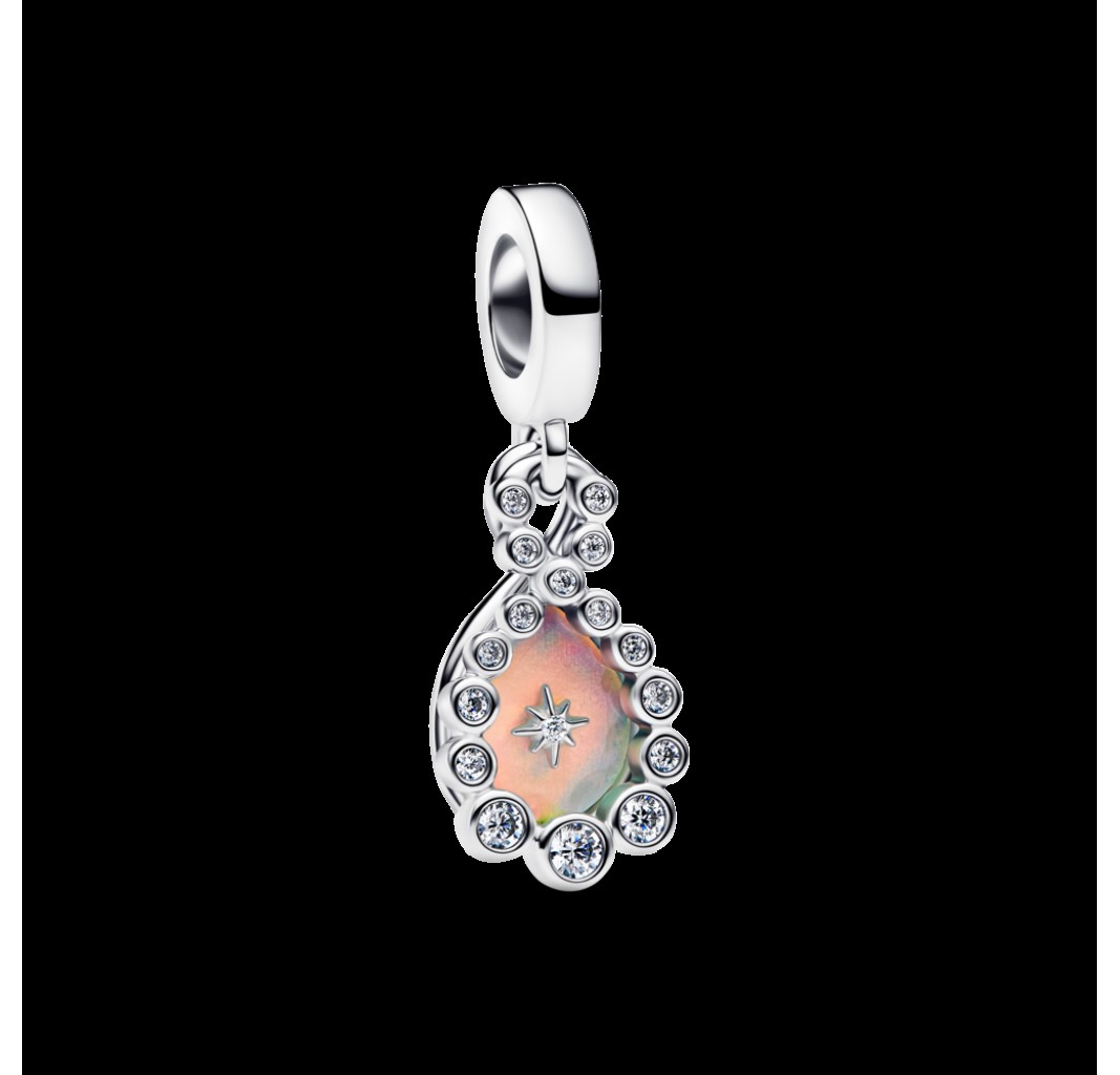 PANDORA 794251C01 Colgante doble Infinity de plata esterlina con circonita cúbica transparente y resina de ópalo Aurora cultivada en laboratorio.
