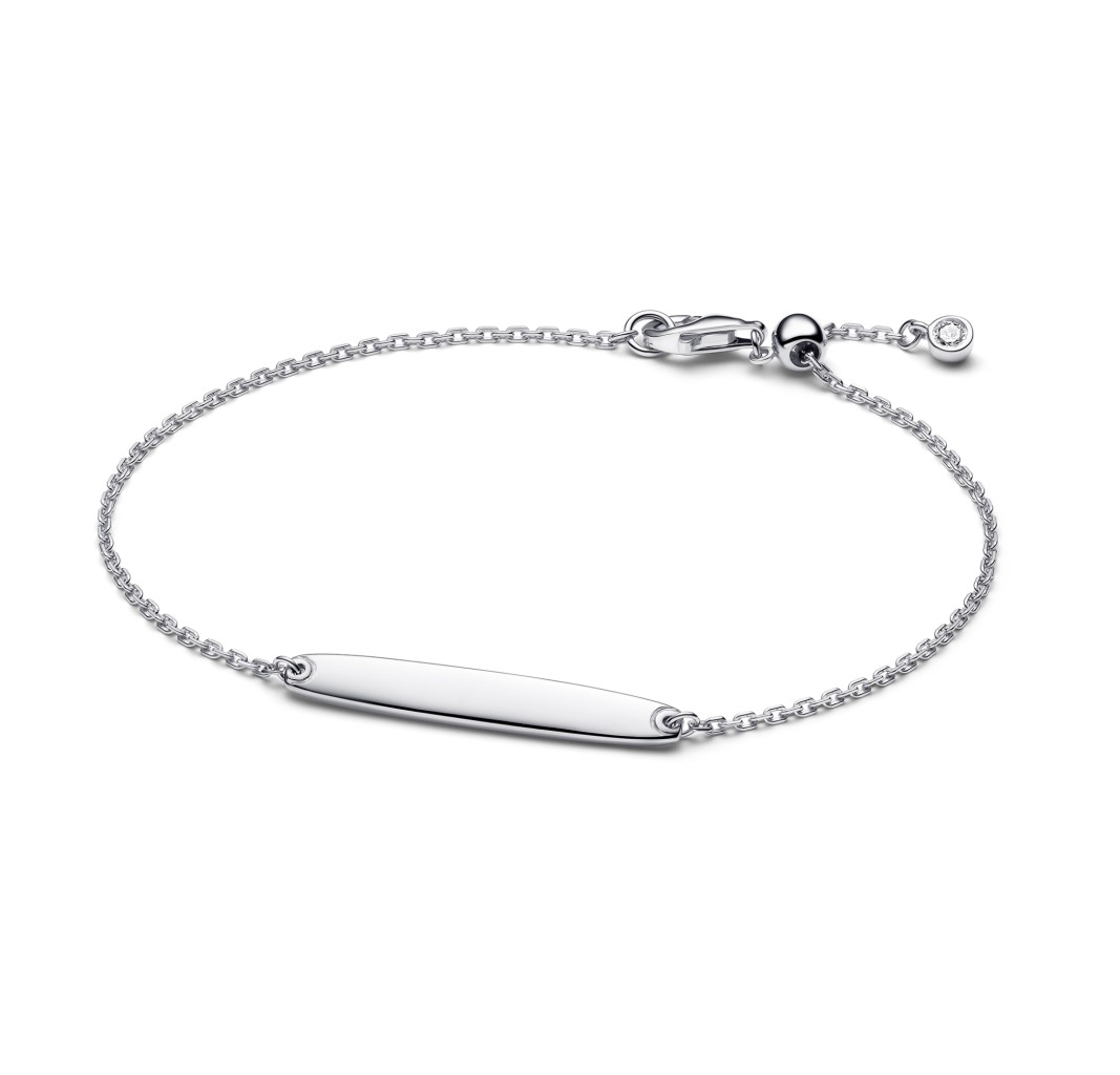 594010C01-18 Engravable sterling silver bar bracelet with clear cubic zirconia