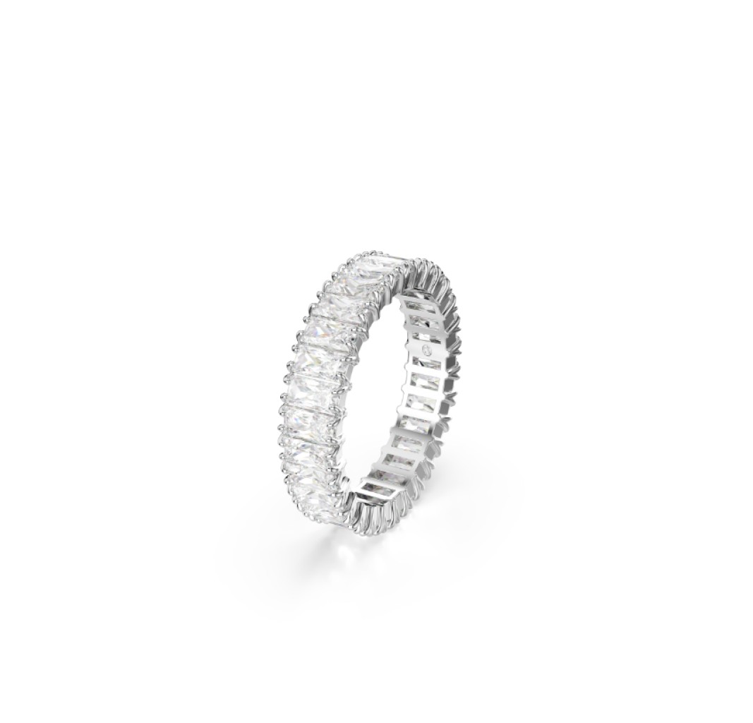 SWAROVSKI ANILLO MATRIX, TALLA BAGUETTE BLANCO, ACABADO EN TONO PLATEADO