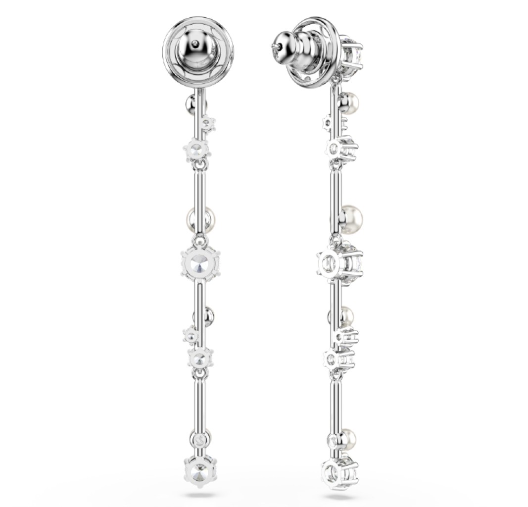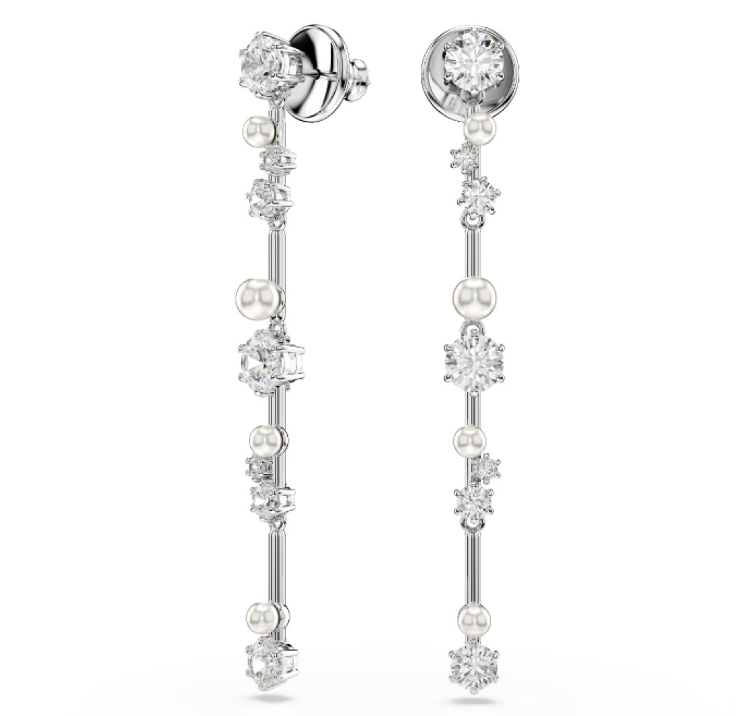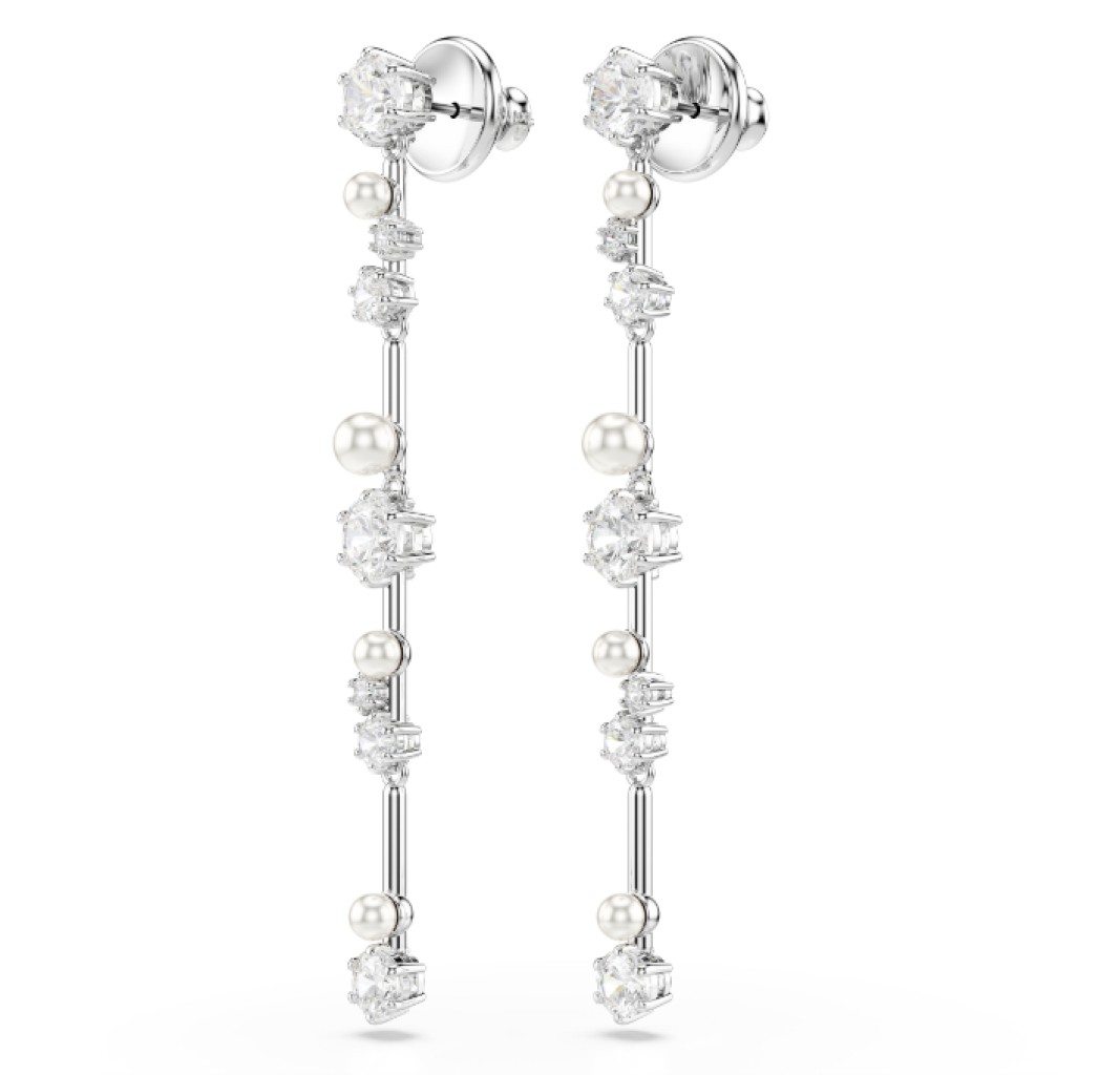 SWAROVSKI PENDIENTES CONSTELLA, CRYSTAL PEARL, TALLAS REDONDAS BLANCOS, BAÑO DE RODIO